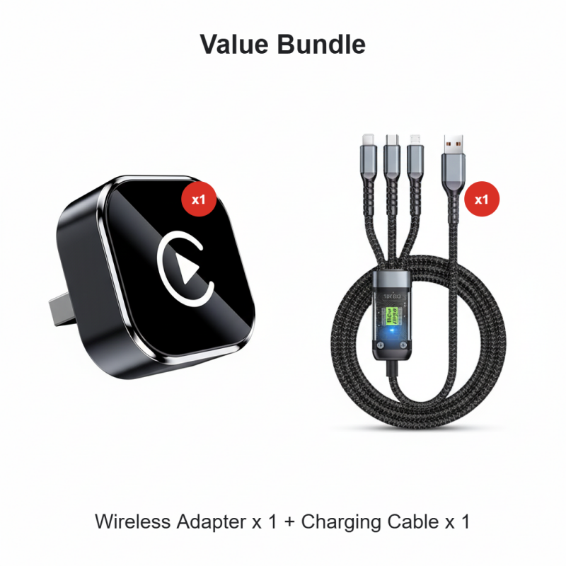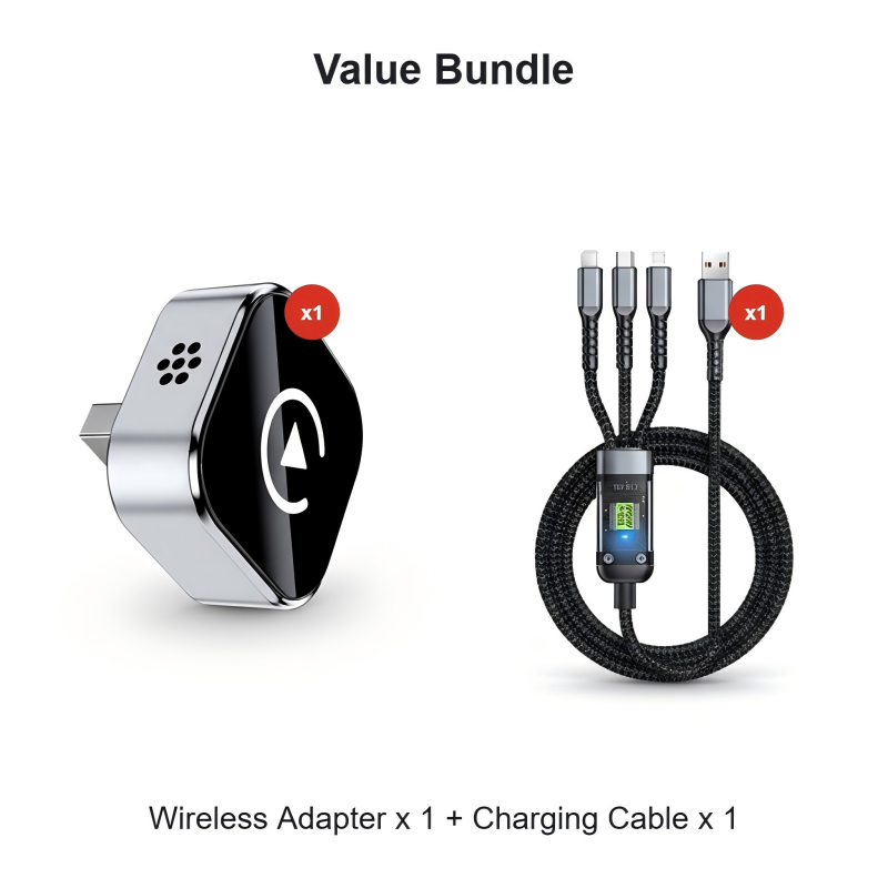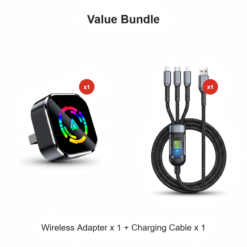 Package Includes:Ā 1 * 2-in-1 Wireless Adapter for iPhone & Android Auto