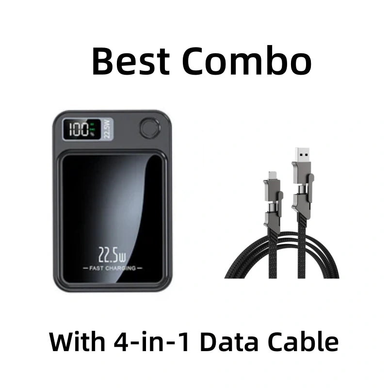 22.5W ULTRA FAST CHARGING - Unleash the next generation of charging speed! 22.5W wired super charging charges devices twice as fast, while 15W wireless charging effortlessly powers Qi compatible devices. Thanks to PD20W bi-directional charging, the power bank is fully charged in just 1 hour. Perfect for iPhones, Android devices and AirPods.