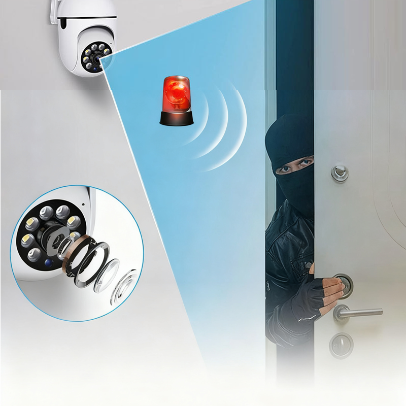 FULL COVERAGE SURVEILLANCE – Equipped with 360° pan-tilt rotation, this camera eliminates blind spots, ensuring every corner of your home or office is monitored. The wide-angle lens provides high-definition imaging, allowing you to see details clearly both day and night.