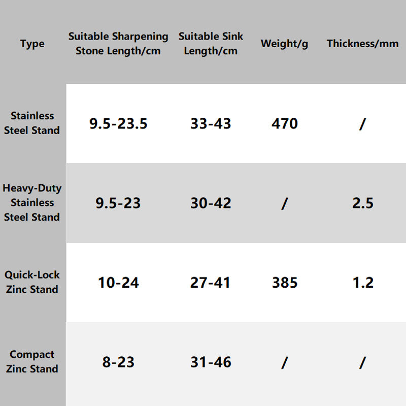 INDUSTRIAL-STRENGTH CONSTRUCTION: Choose between premium 2.5mm thick stainless steel (470g) or lightweight zinc-alloy (385g) frames. Both options resist corrosion from water exposure and withstand years of daily use. The non-slip rubber feet stay put during vigorous sharpening motions.