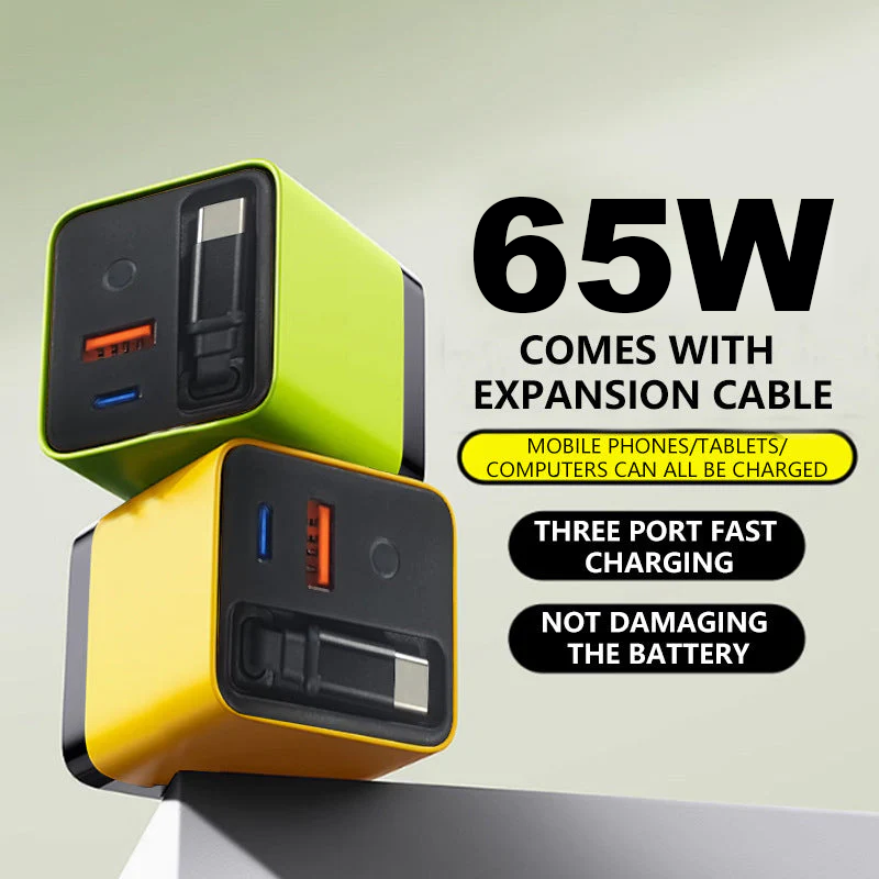 Package Includes: 1 * 65W Fast Charging Phone Charger Block with Retractable 80cm Type-C Cable