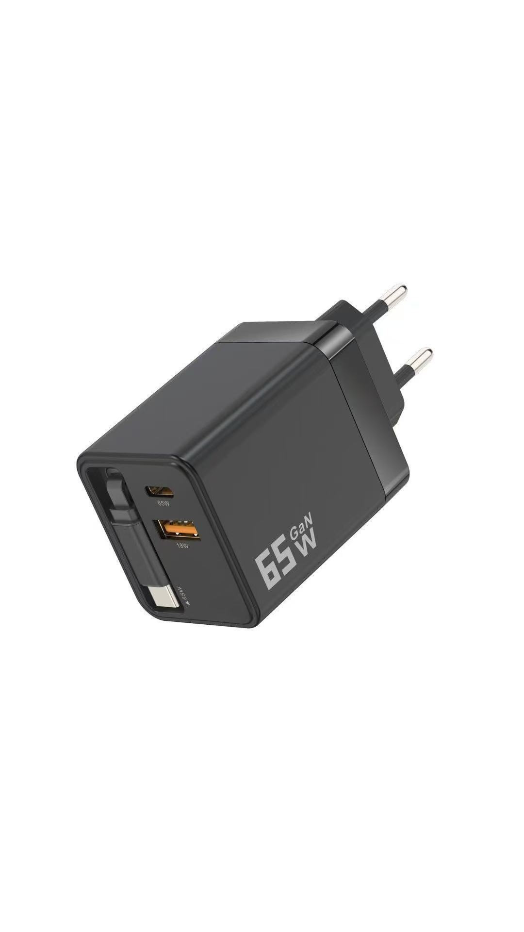 65W Fast Charging Phone Charger Block with Retractable 80cm Type-C Cable