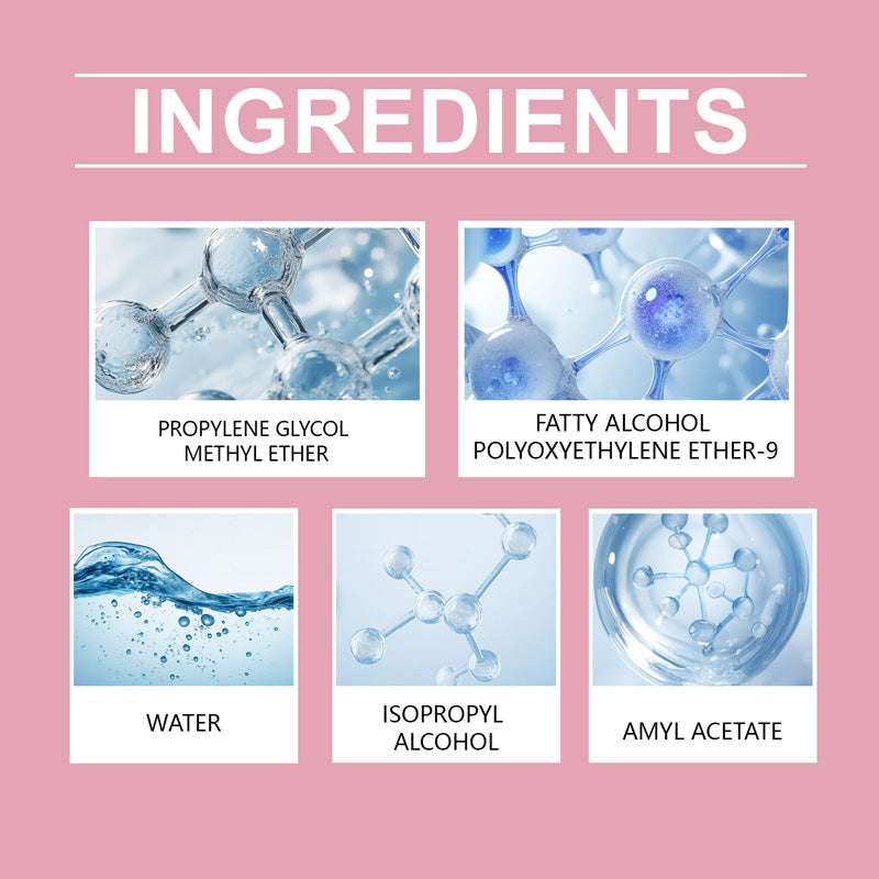 Ingredients:Propylene glycol methyl ether, Fatty alcohol polyoxyethylene ether-9, Water, Isopropyl alcohol, Amyl acetate