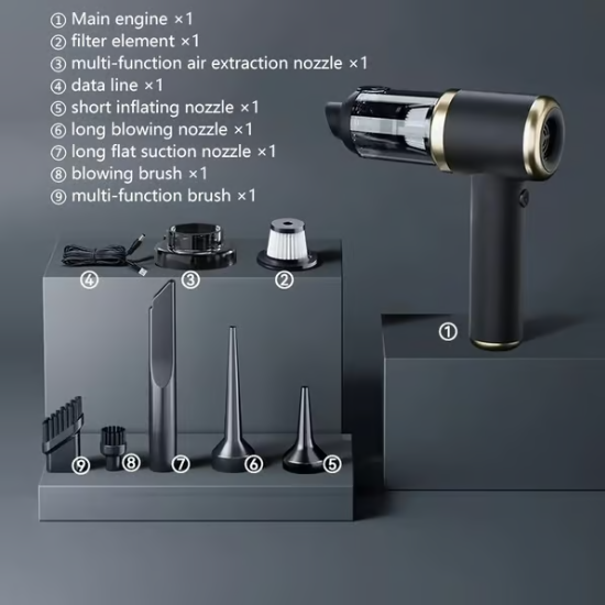 The hand vacuum cleaner is equipped with four functions: suction, blowing, inflation and vacuuming. Strong suction power to thoroughly clean every inch of space.