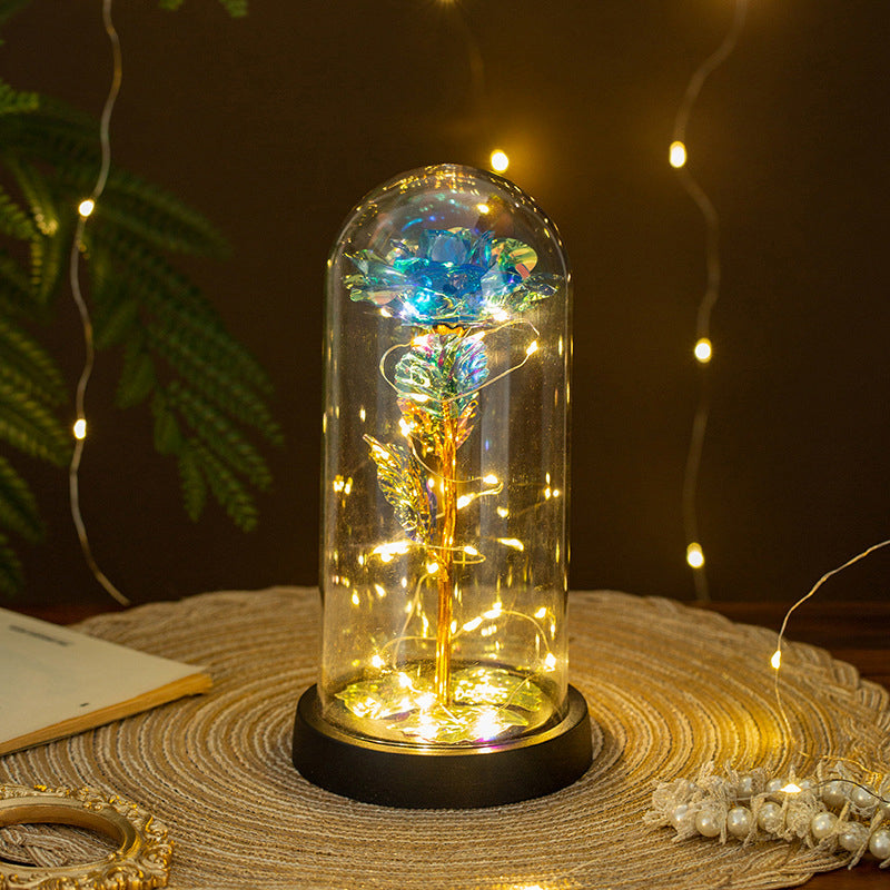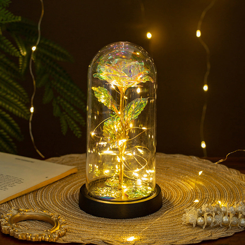 Preserved Real Rose in Glass Dome Eternal Flower Gift for Women Valentine's Day Birthday Anniversary Mother's Day Decorative Christmas Gifts for Christmas Day Stunning Rainbow Holographic Coating Plated Galaxy Rose