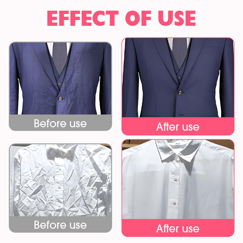 QUICK-ACTING WRINKLE ERASER – Smooths away creases in minutes with a proprietary formula that relaxes fabric fibers on contact. The fine mist penetrates deep into materials to release stubborn wrinkles without ironing.