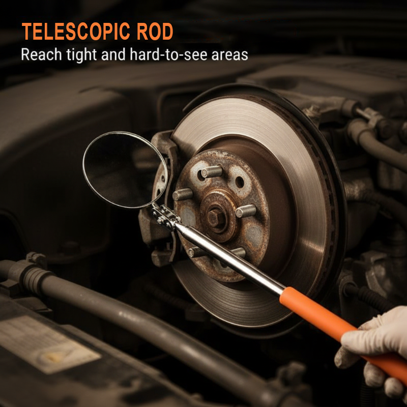 TELESCOPIC STAINLESS STEEL ROD - Extends your reach significantly, allowing you to inspect under vehicles, behind heavy machinery, or inside engine bays while maintaining a comfortable and safe standing position away from hazards.