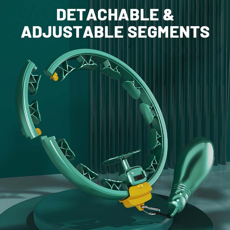 ADJUSTABLE SEGMENTS – The hoop features a detachable multi-segment design, allowing users to remove or attach sections easily to fit different waist sizes. The secure anti-derail safety lock keeps each segment firmly in place during rotation. This design ensures a safe, stable, and comfortable workout for users of all ages and sizes.