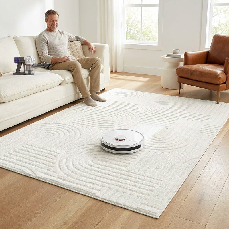 GEOMETRIC PATTERN - Offers the stunning visual depth of a high-low sculpted rug with a modern arch and line design. This creates a sophisticated focal point without the difficulty of cleaning raised textures.