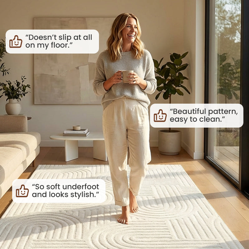 VERSATILE MODERN AESTHETIC - With its minimalist line art and neutral color options, this rug effortlessly complements various interior styles. It's a perfect accent piece for living rooms, bedrooms, entryways, or home offices.