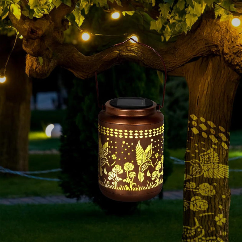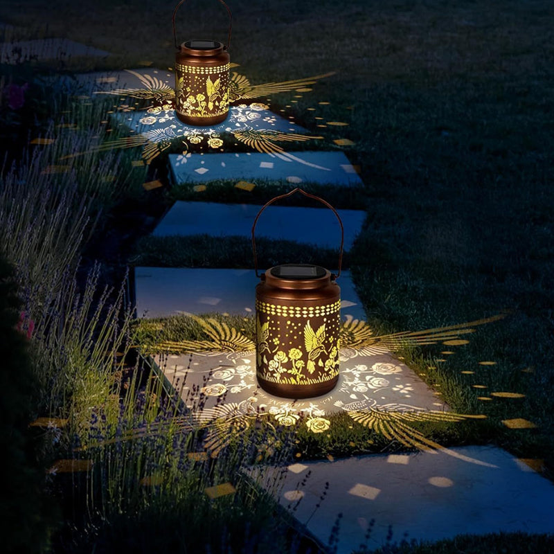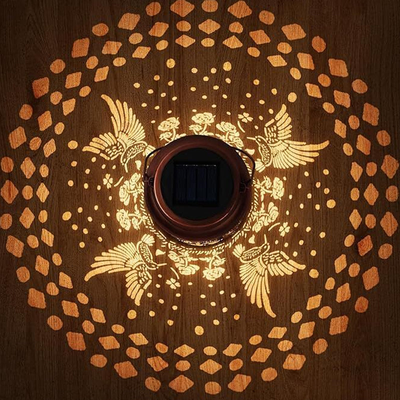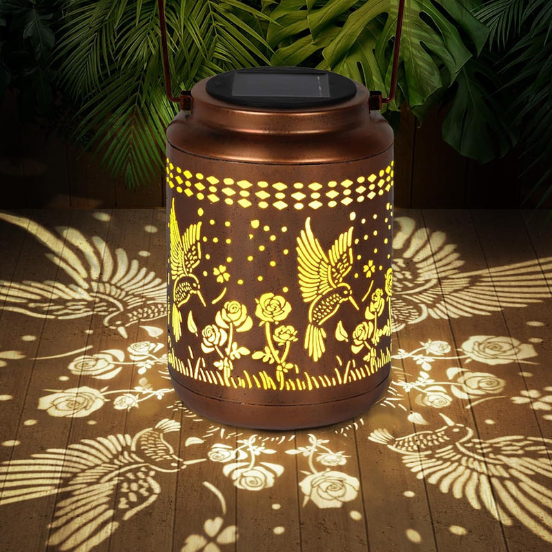 ELEGANT HOLLOW-CARVED DESIGN - Features an intricate hummingbird and floral pattern. When lit, it projects stunning and vivid shadows, creating a romantic and enchanting atmosphere perfect for gardens, patios, or any outdoor gathering.